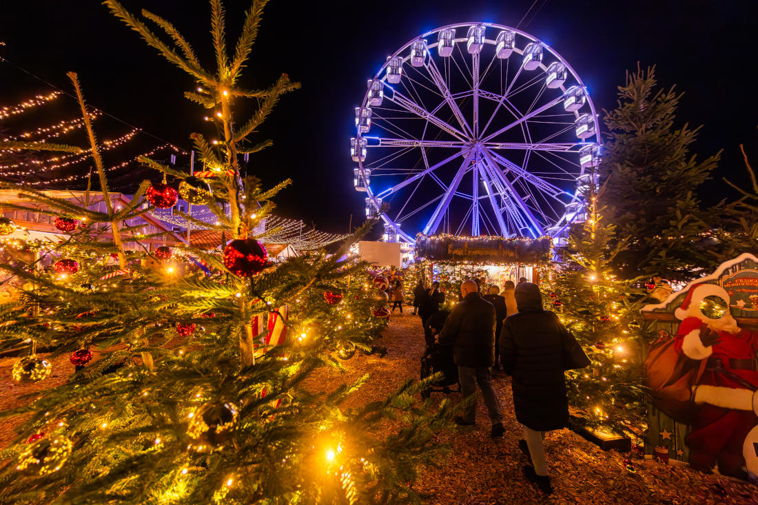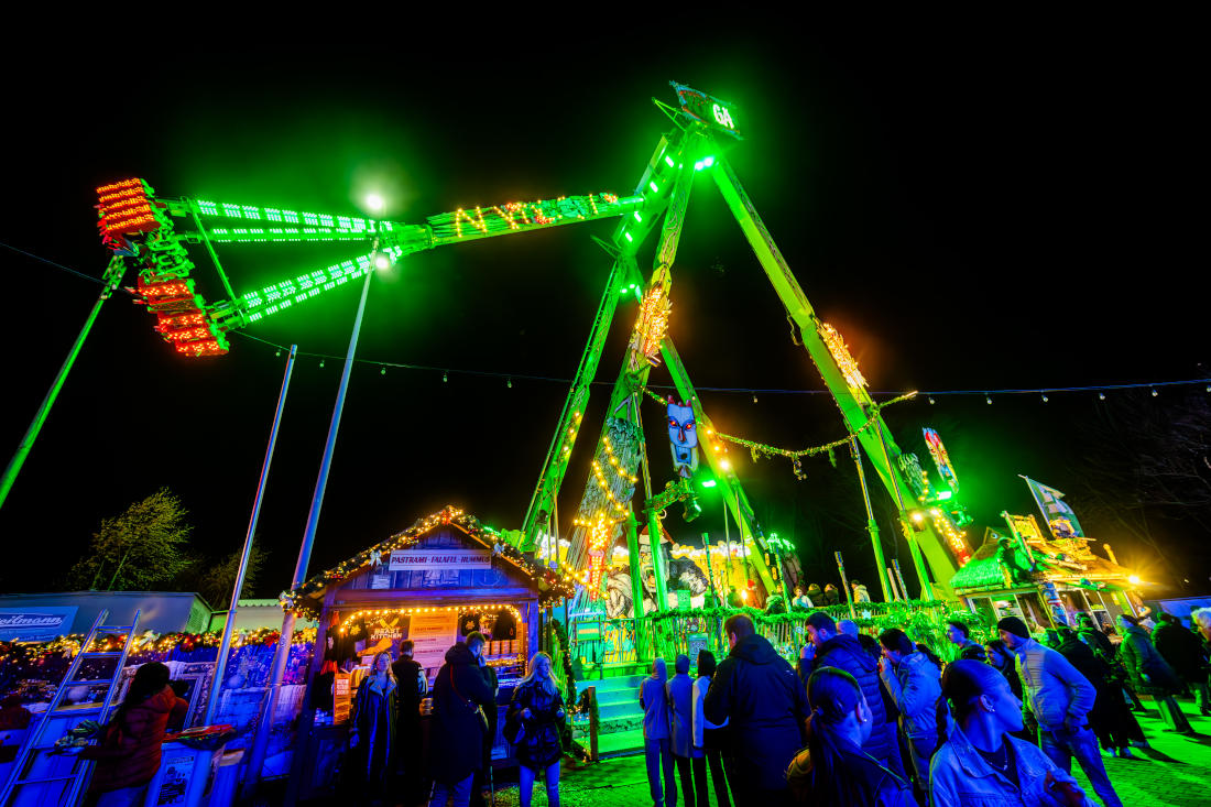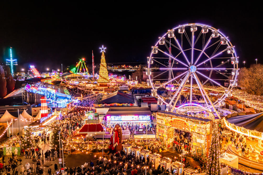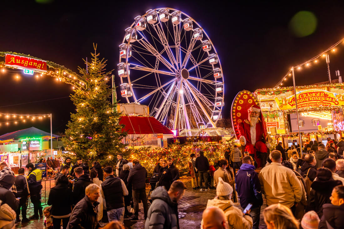 This year, the Cranger Weihnachtszauber delights visitors with over 100 exhibitors and showmen offering culinary delights, gifts, and exciting attractions. A special highlight is the world’s largest mobile Christmas tree! The 45-meter-high tree shines with 2 million LEDs and enchants visitors hourly with a spectacular light show—comparable to the illumination of the Eiffel Tower in Paris. Additionally, magic happens every full hour: it snows!